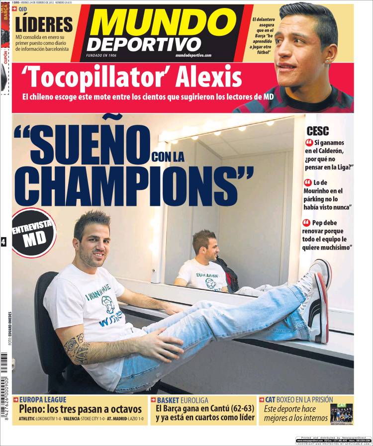 MUNDO DEPORTIVO CHAMPIONS – Sul quotidiano Mundo Deportivo si parla di Fabregas che sogna di vincere la Champions League.