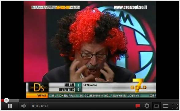 SERIE A MILAN JUVENTUS CRUDELI – Doppia sfida negli studi di ‘7 Gold’ tra i giornalisti tifosi di Milan, Tiziano Crudeli e Juventus, Antonio Paolino. Super eesultanze per i due gol che hanno deciso la gara, quello di Nocerino nel primo tempo e Matri nella ripresa, super lamentele per le sviste del guardalinee Romagnoli sui gol regolari di Muntari (salvataggio oltre la linea bianca di Buffon) e Matri, fermato in fuorigioco millimetrico. Un circo che continua e strappa qualche sorriso riguardo alla categoria del commentatore tifoso, ma che con la cronaca sportiva a poco a che fare.