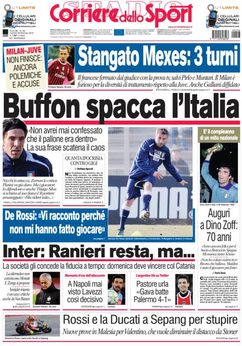 CORRIERE MEXES – Sul Corriere dello Sport si parla delle tre giornate rifilate a Mexes dal Giudice Sportivo.