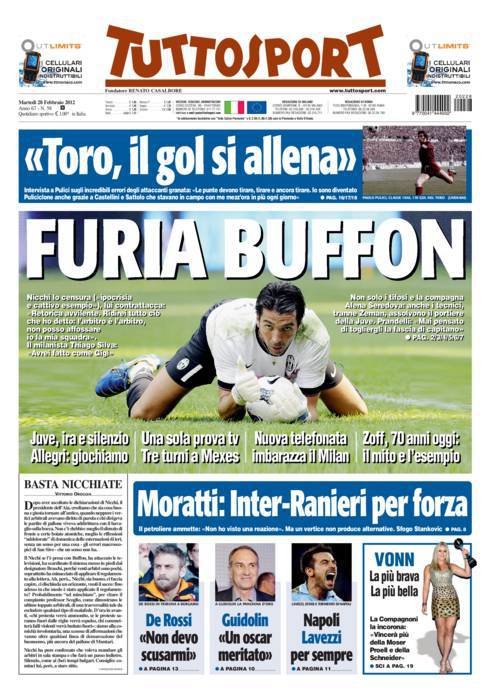TUTTOSPORT BUFFON – Su Tuttosport si parla di Buffon e delle polemiche intorno alla sua frase sul gol non convalidato a Muntari in Milan-Juventus.
