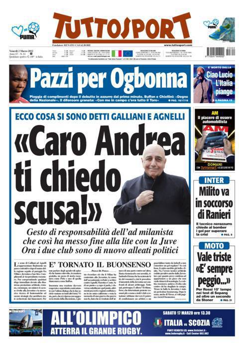 TUTTOSPORT GALLIANI – Tuttosport rivela le parole di Galliani ad Agnelli durante la telefonata di martedì sera.