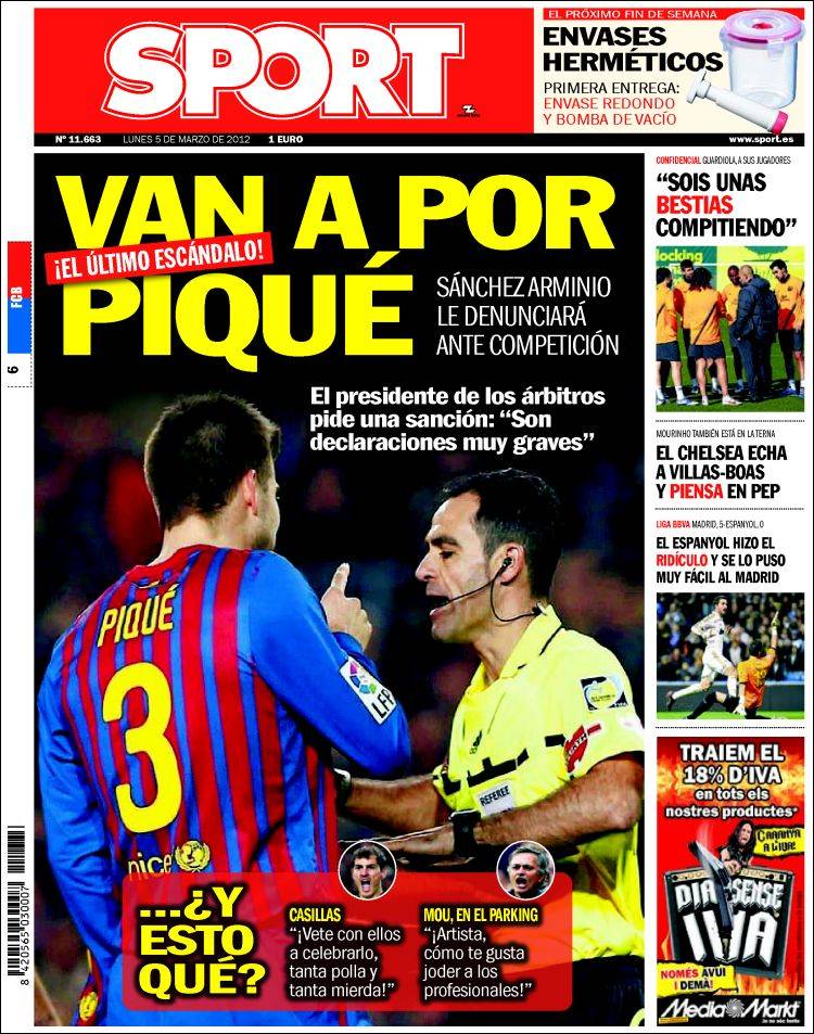 SPORT PIQUE’ – Sul quotidiano Sport si parla della polemica del presidente degli arbitri nei confronti di Piquè.