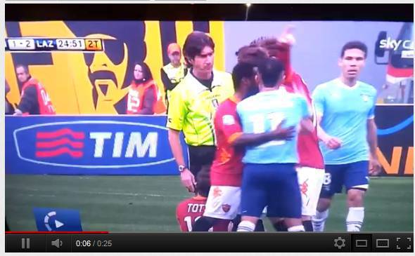 VIDEO MATUZALEM – Probabile nuova prova tv al vaglio del giudice sportivo Tosel dopo la giornata di campionato di ieri. Nelle ultime ore è infatti spuntato sul web un video rigurdante Roma-Lazio di ieri pomeriggio in cui si nota il centrocampista biancoceleste Matuzalem rifilare un buffetto all’avversario Borini al 24esimo del secondo tempo dopo interruzione per fallo di Dias su Totti. La dinamica rispecchia in pieno quella di qualche settimana fa con protagonista Ibrahimovic e Aronica e che è costata tre giornata di squalifica allo svedese. Di seguito il video.