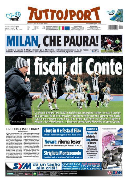 TUTTOSPORT CONTE – Su Tuttosport si parla di Conte che ieri ha criticato i tifosi della Juventus dopo i fischi di sabato sera.