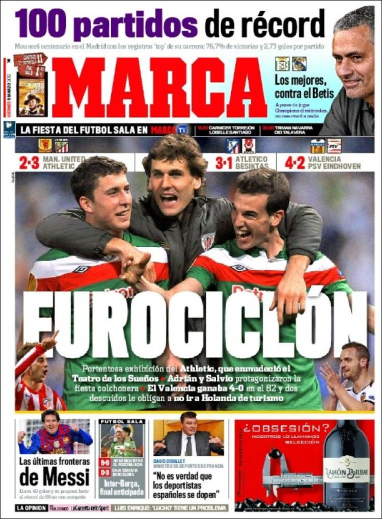 MARCA SPAGNA – Le tre squadre spagnole di Europa League vincono i propri match, il Bilbao vince addirittura a Manchester contro lo United.