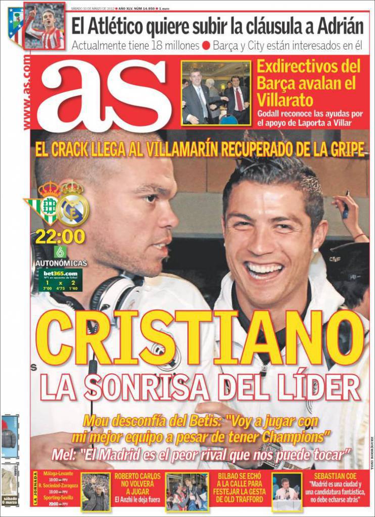 AS RONALDO – Sul quotidiano As si parla di Ronaldo che è molto sereno. Il Real questa sera giocherà contro il Villareal.