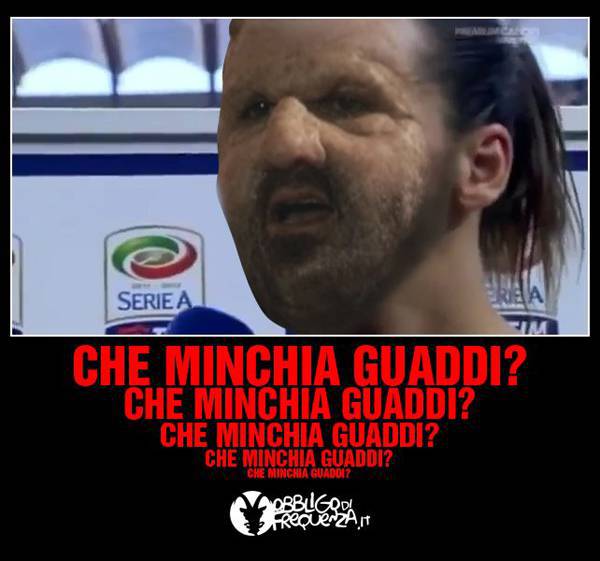 FACEBOOK IBRAHIMOVIC – Uno splendido fotomontaggio ispirato al noto siparietto post-Milan-Lecce, Ibrahimovic-Spadini, sta girando in queste ore sul social network Facebook. Qualcuno di assolutamente geniale ha realizzato un fotomontaggio trasformando Ibra nel famoso Mafioso de I Soliti Idioti, esilarante sit com in onda su Mtv. Il “Cazzo ti guardi” di Ibra, diventa così “Che minchia guaddi“, frase che il suddetto mafioso ama ripetere a tutti coloro che incrociano il suo sguardio. Di seguito la foto in questione, assolutamente da non perdere!