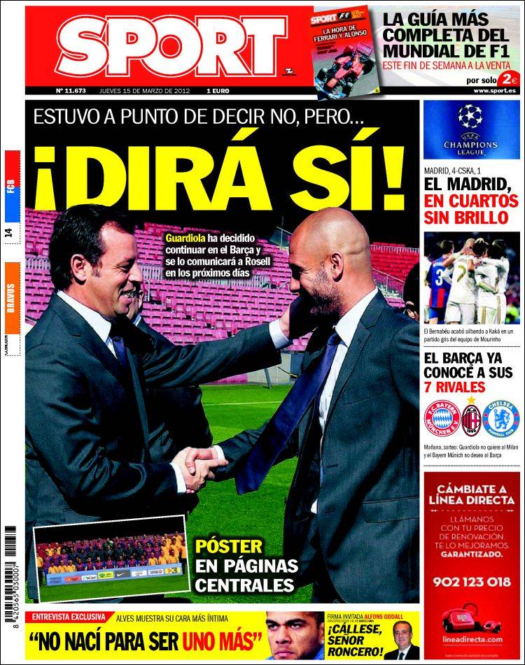 SPORT BARCELLONA – Sul quotidiano Sport si parla del rinnovo di Guardiola vicino alla firma con il Barcellona.