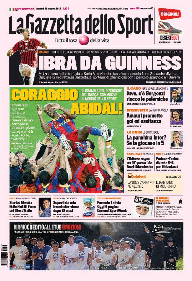 GAZZETTA ABIDAL – Sulla Gazzetta dello Sport si parla di Abidal che dovrà subire un trapianto di fegato.