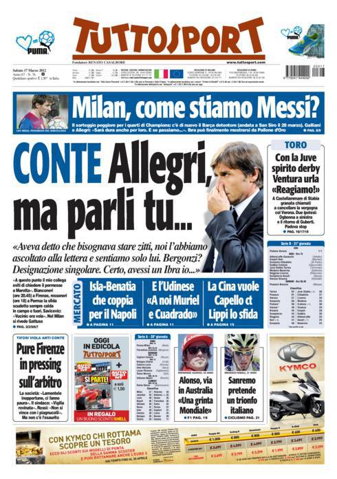 TUTTOSPORT ALLEGRI CONTE – Su Tuttosport si parla dells sfuriata di Conte nei confronti di Allegri.