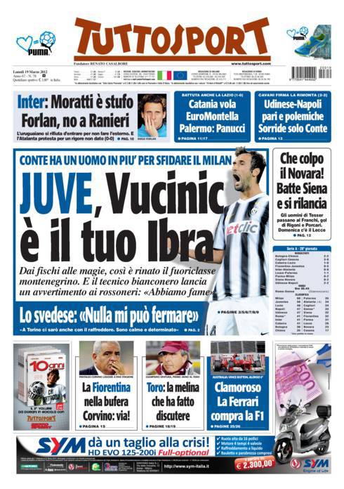 TUTTOSPORT JUVENTUS VUCINIC IBRAHIMOVIC – Su Tuttosport si parla di Vucinic che ha convinto tutti alla Juventus.