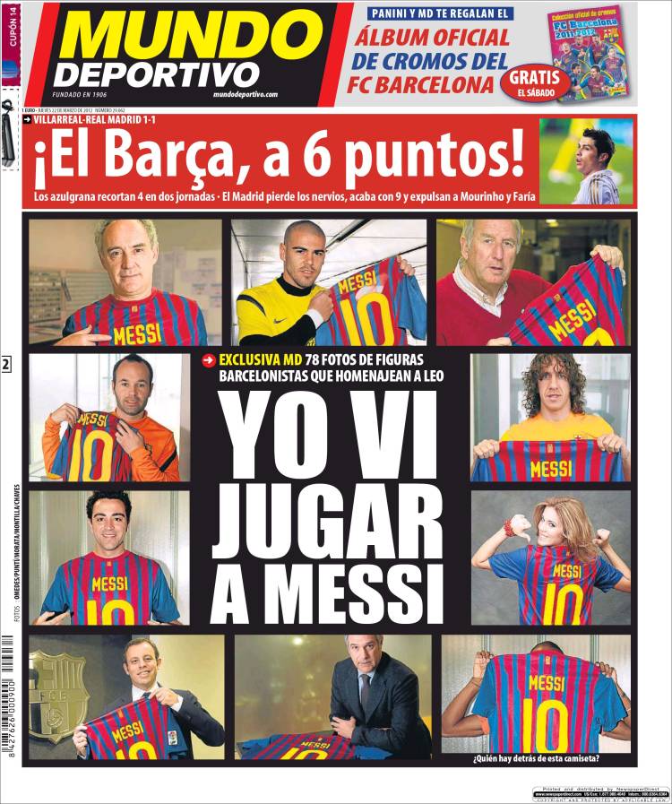 MUNDO DEPORTIVO BARCELLONA – Anche il Mundo Deportivo parla del pareggio del Real Madrid contro il Villareal che porta il Barcellona a meno sei punti.
