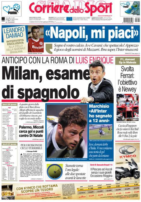 CORRIERE MILAN – Il Corriere dello Sport parla del match di questa sera tra Milan e Roma.