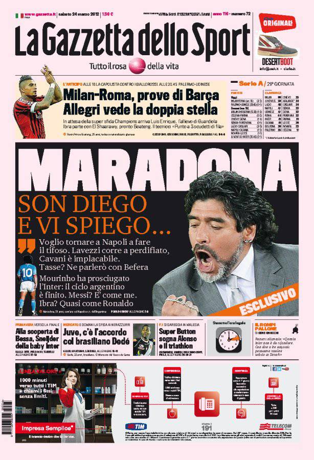 GAZZETTA MARADONA – Intervista esclusiva a Maradona sulla Gazzetta dello Sport.