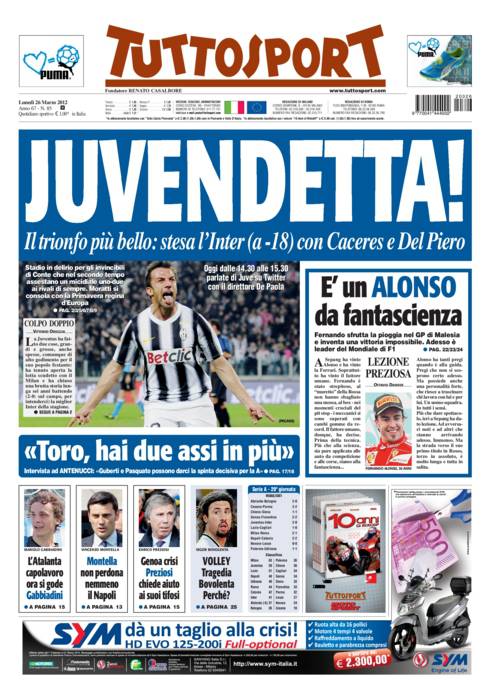 TUTTOSPORT JUVENTUS – Ovviamente Tuttosport parla della vittoria della Juventus per due a zero contro l’Inter.