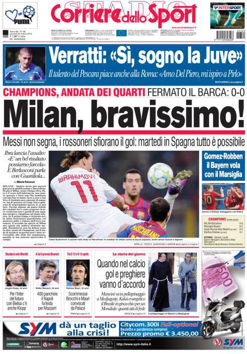 CORRIERE MILAN – Il Corriere dello Sport elogia la prova del Milan contro il Barcellona.