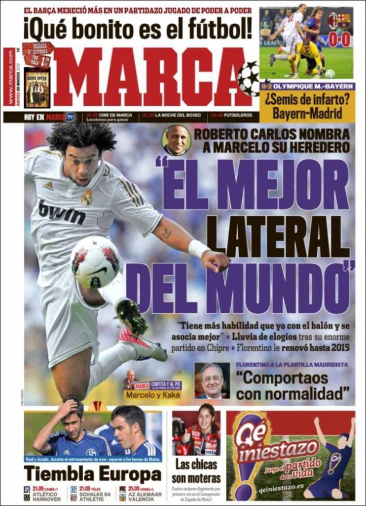 MARCA MARCELO – Roberto Carlos incorona Marcelo del Real Madrid come suo erede.