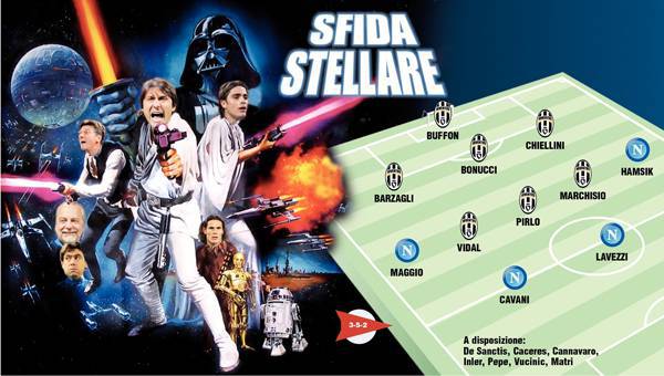 JUVENTUS NAPOLI – In occasione della sfida dello Juventus Stadium fra i padroni di casa bianconeri e il Napoli la redazione di Tuttosport ha realizzato uno splendido fotomontaggio trasformando i protagonisti del match negli eroi di Star Wars, la nota saga cinematrografica di George Lucas. Di seguito la foto pubblicata da Tuttosport: cosa ne pensate?