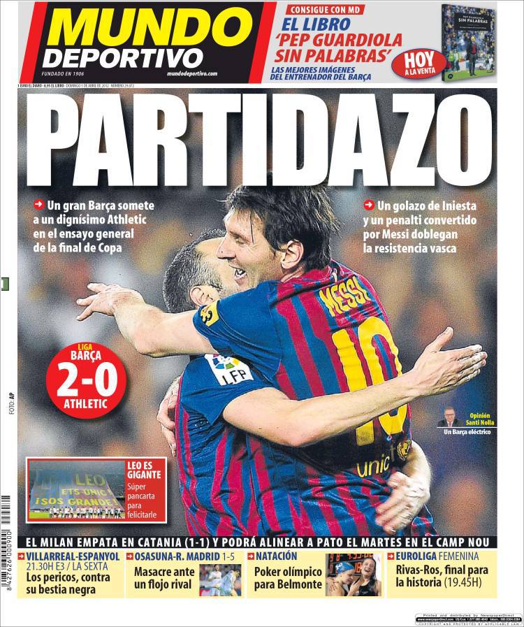 MUNDO DEPORTIVO SUPER PARTITA – Il Barça ha però risposto a tono il Real Madrid, battendo l’Athletic Bilbao per 2 reti a zero. Riusciranno gli azulgrana a tenere il passo dei galacticos?