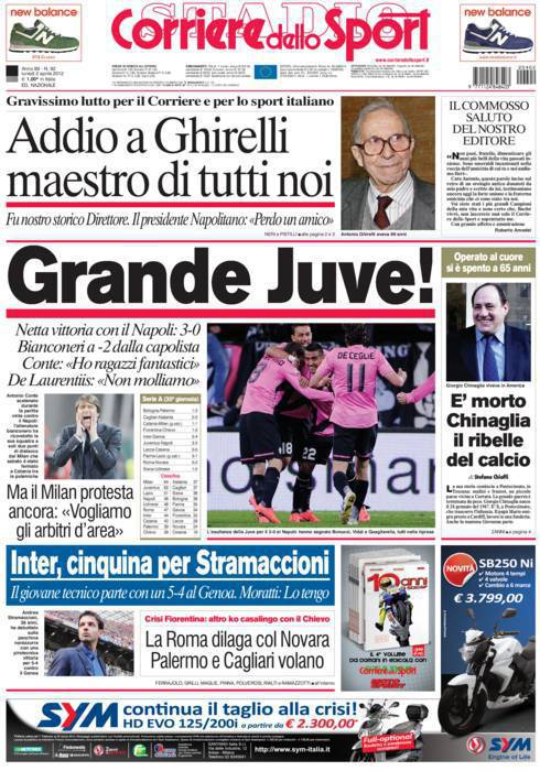 CORRIERE JUVENTUS – Sul Corriere dello Sport si parla del tre a zero della Juventus contro il Napoli.