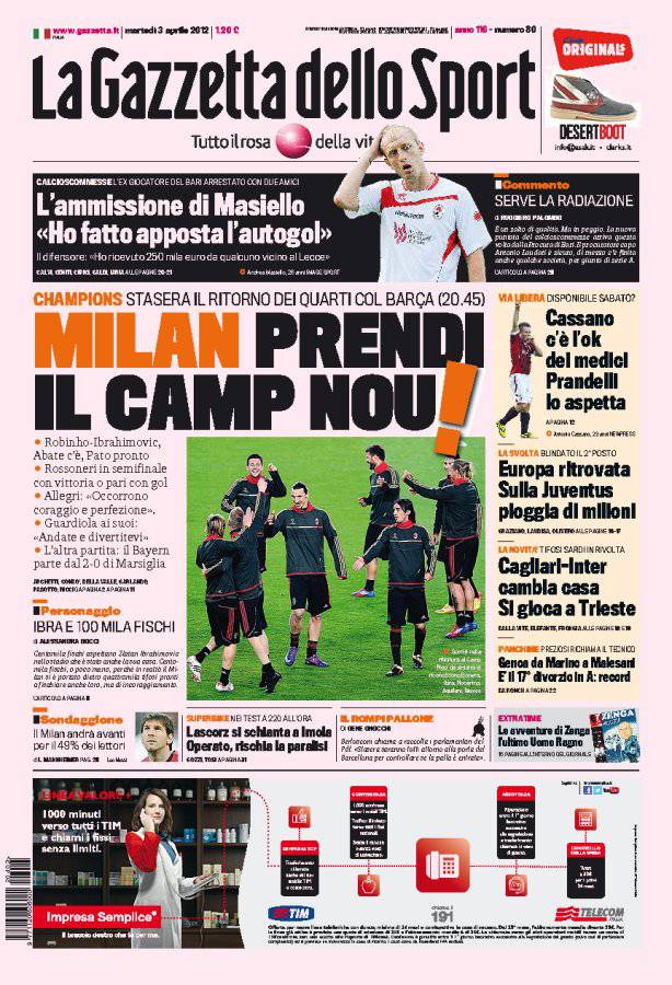 GAZZETTA DELLO SPORT MILAN CAMP NOU – Milan e Barça si affronteranno questa sera al Camp Nou di Barcellona per il ritorno dei quarti di finale di Champions. Ibra e compagni, come ci ricorda la Gazzetta dello Sport, riusciranno a battere gli azulgrana?