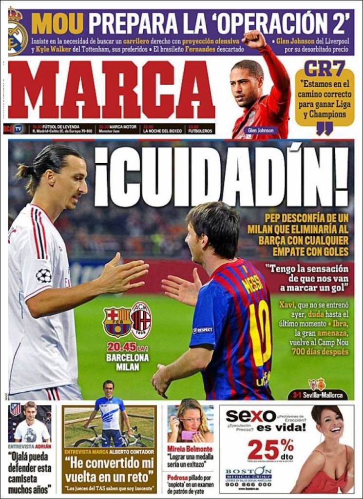 MARCA CUIDADìN – Sarà sicuramente la partita del secolo quella di questa sera al Camp Nou di Barcellona ed anche il quotidiano Spagnolo Marca, la celebra nella sua prima pagina.