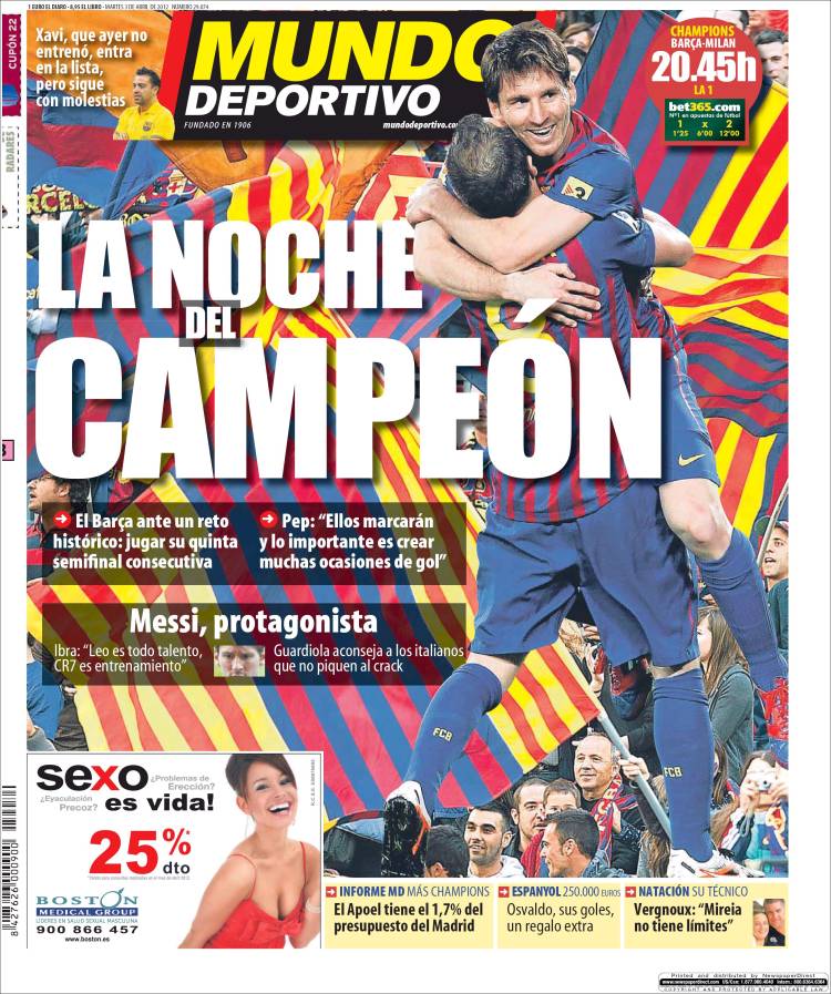 MUNDO DEPORTIVO NOTTE CAMPIONE – Sarà questa notte, la notte di Leo Messi? Il quotidiano spagnolo, El Mundo Deportivo, se lo augura e dedica alla Pulce la prima pagina.