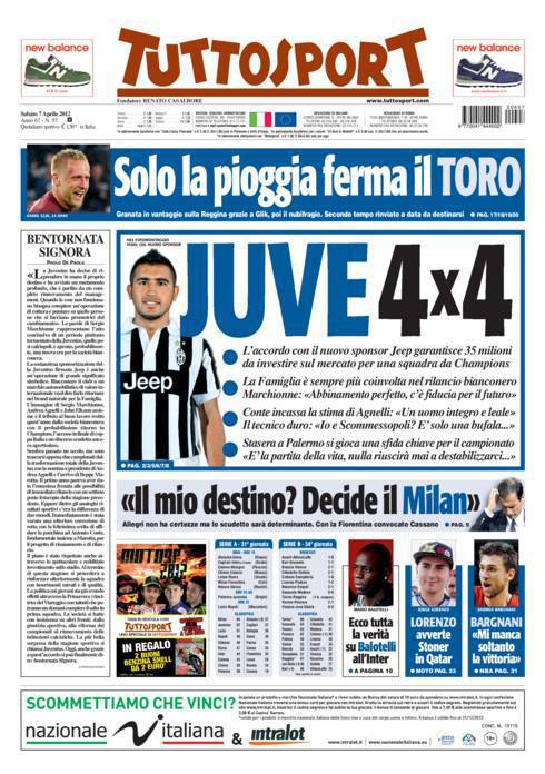 TUTOSPORT JUVENTUS – Anche Tuttosport parla della sponsorizzazione Jepp sulle maglie della Juventus.