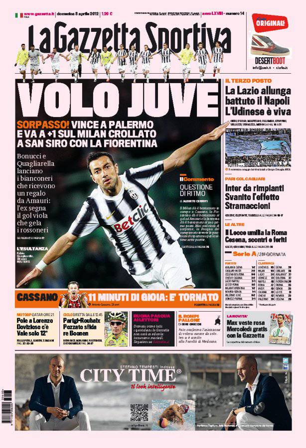 GAZZETTA DELLO SPORT PRIMA PAGINA – La Gazzetta dello Sport dedica la prima pagina alla grande vittoria della Juventus che torna in vetta al campionato.