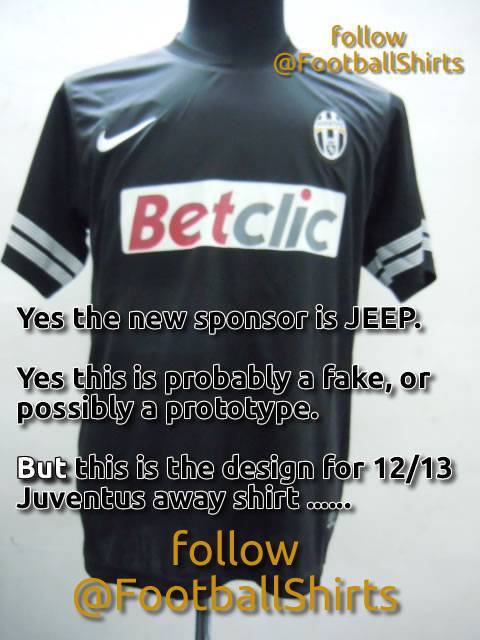 NUOVA MAGLIA JUVENTUS – Il noto sito Football-shirts ha pubblicato quello che, secondo lo stesso, sarà a tutti gli effetti la nuova maglia della Juventus per la stagione 2012-2013, o meglio, il design per la nuova creatura away di Corso Galileo Ferraris. Specificando che trattasi probabilmente di un fake e che evidentemente lo sponsor non sarà Betclic, avendo da poco firmato un accordo con Jeep, gli amici di Football-shirts assicurano che la maglia mostrata ricalcherà in tutto e per tutto il design della nuova divisa. Come vi sembra?
