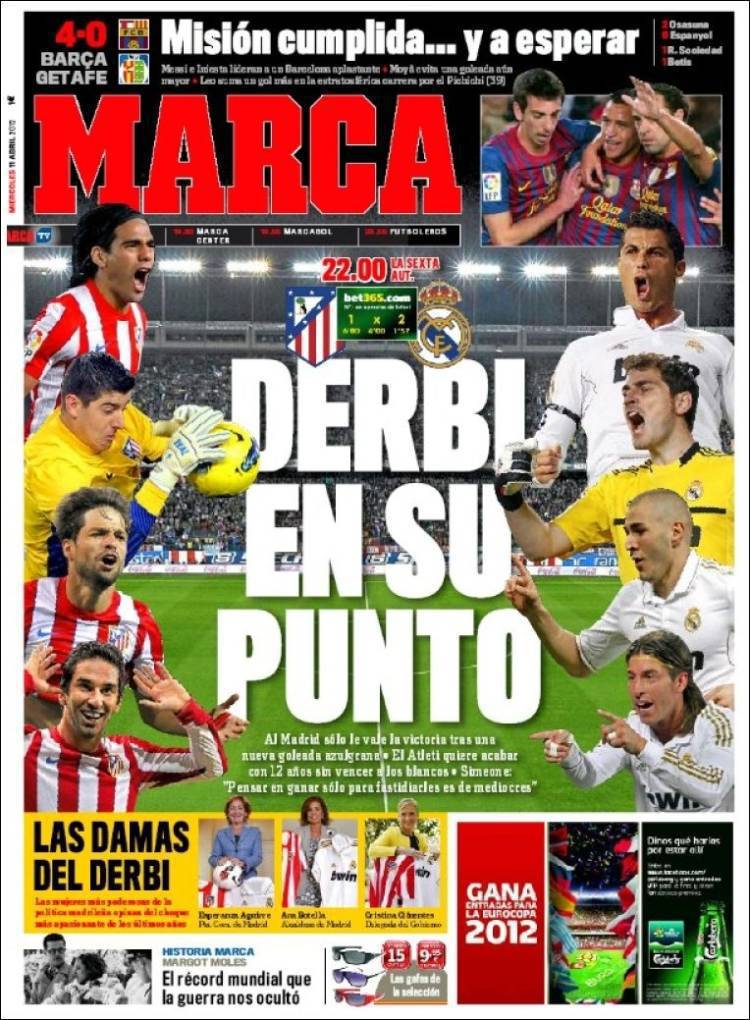 MARCA REAL MADRID – Questa sera ci sarà il derby di Madrid, il Real Madrid di Mourinho dovrà vincere per allontanare il Barcellona.