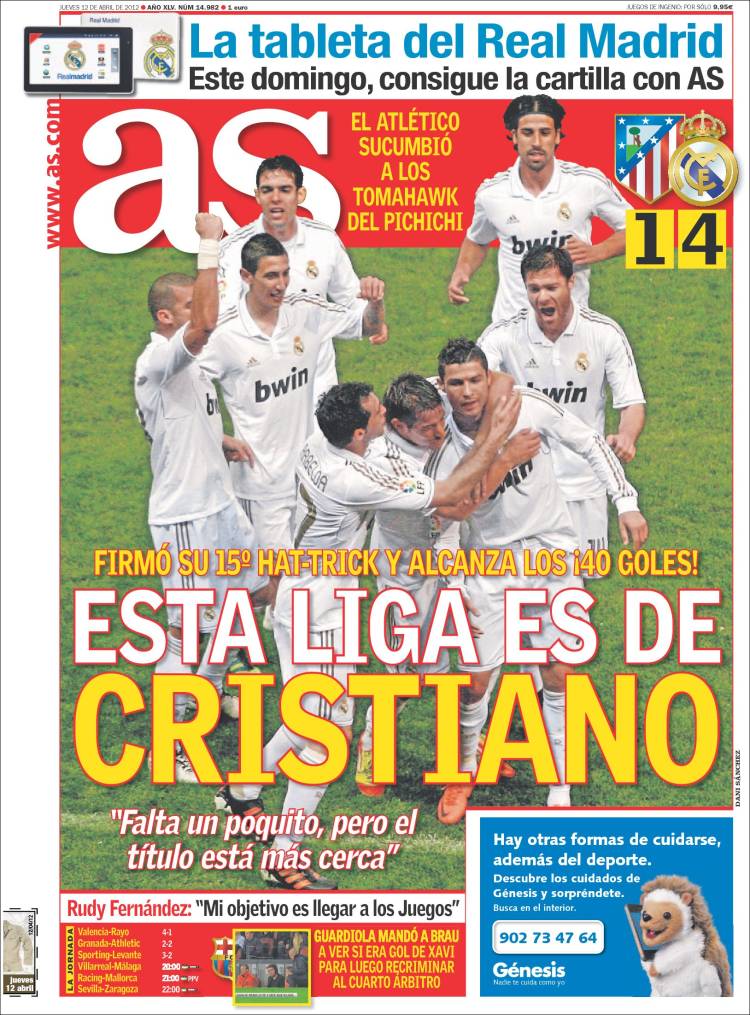 AS RONALDO – As elogia Cristiano Ronaldo ieri autore di una tripletta nel quattro a uno del Real Madrid sull’Atletico.