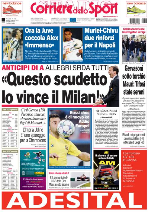 CORRIERE SCUDETTO MILAN – Sul Corriere dello Sport si parla di Allegri che ha parlato dello Scudetto.