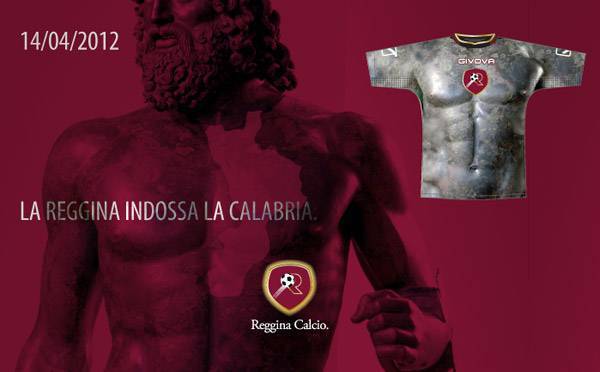 MAGLIA SPECIALE REGGINA – In occasione del derby calabrese di sabato scorso fra la Reggina e il Crotone la squadra di Reggio Calabria ha deciso di indossare una divisa speciale ad hoc in onore dei Bronzi di Riace, le sculture che sono il simbolo della cittadina calabrese. Una maglia di color bronzo che ricalca in pieno le famose sculture elleniche risalenti al quinto secolo a.c. Una scelta interessante dal punto di vista culturale ma decisamente criticabile da quello estetico. La maglia risulta infatti essere fin troppo appariscente e a nostro avviso rientra di diritto nelle più brutte di sempre. Promossa l’iniziativa, bocciato lo stile. Di seguito foto e video della casacca in questione.