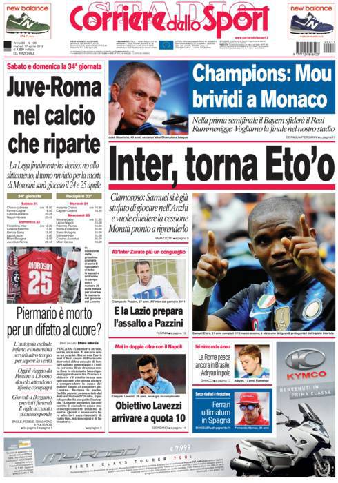 CORRIERE DELLO SPORT INTER ETO’O – Una clamorosa indiscrezione di mercato rilasciata quest’oggi dal quotidiano Corriere dello Sport: Samuel Eto’o sarebbe pronto a tornare all’Inter.