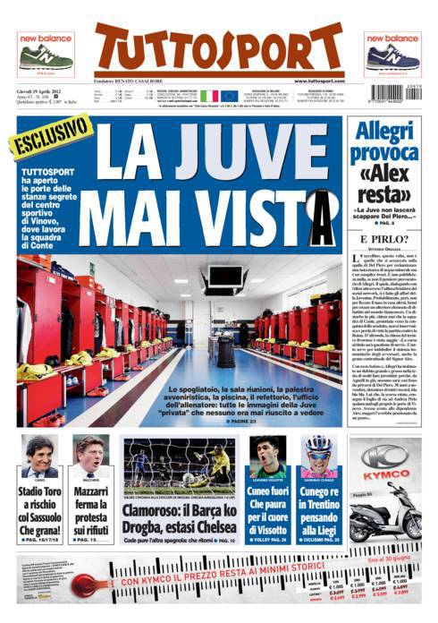 Tuttosport: La Juve mai vistA 19/04/2012 di admin TUTTOSPORT JUVENTUS – Uno Speciale di Tuttosport che apre le porte di Vinovo ai tifosi della Juventus. La redazione di Calciomercatonews.com