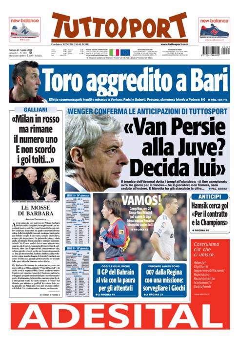 TUTTOSPORT WENGER VAN PERSIE JUVENTUS – Su Tuttosport il manager dell’Arsenal Wenger parla del possibile arrivo a Torino di Van Persie.