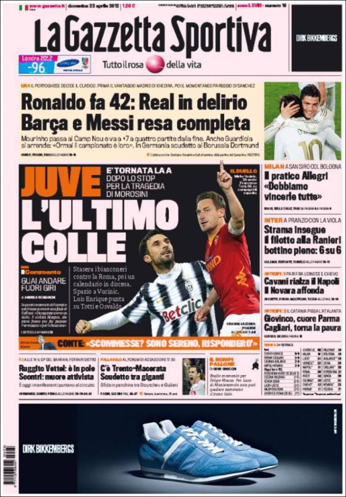 GAZZETTA DELLO SPORT JUVE COLLE – Allo Juventus Stadium questa sera si disputerà Juventus-Roma. Secondo la Gazzetta dello Sport, sarà l’ultimo match difficile delle ultime 6 dei bianconeri, che continueranno a lottare per la vittoria dello scudetto.
