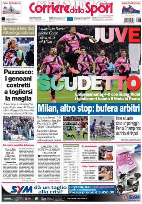 CORRIERE JUVENTUS – Anche il Corriere dello Sport è sicuro: la Juventus è vicina allo Scudetto.