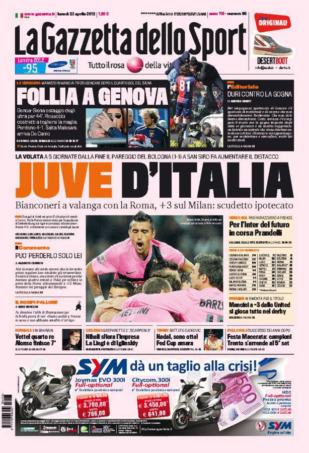 GAZZETTA JUVENTUS – Sulla Gazzetta dello Sport si parla della Juventus che è vicina allo Scudetto.