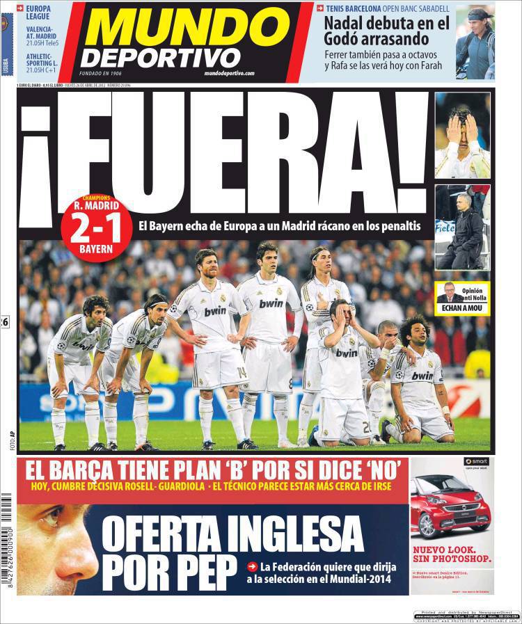MUNDO DEPORTIVO REAL MADRID – Il quotidiano catalano Mundo Deportivo esulta per l’uscita del Real Madrid dalla finale di Champions League.