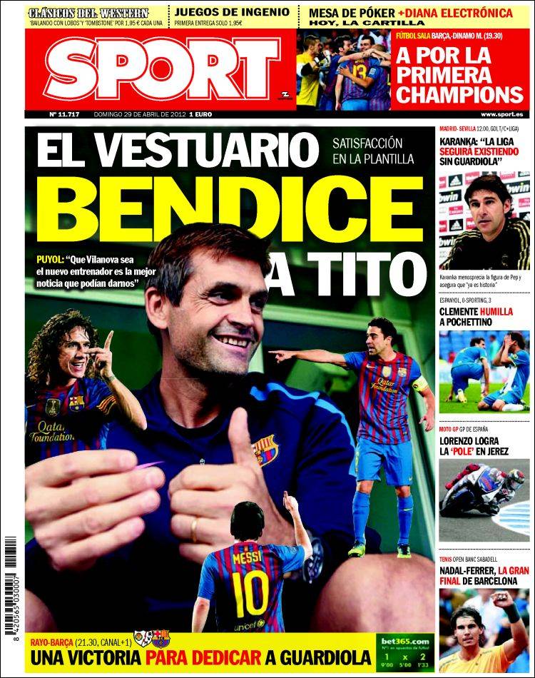 SPORT SPOGLIATOIO TITO – Anche lo spogliatoio Blaugrana ha accettato l’arrivo sulla panchina del Barça di Tito Vilanova, tecnico del post Guardiola. A riportare questa notizia è il quotidiano spagnolo Sport.