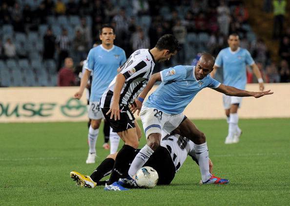 SERIE A UDINESE LAZIO – Nel posticipo della 35esima giornata di Serie A si affrontano Udinese e Lazio per la conquista del terzo posto che significa Champions League. Nel primo tempo a fare la partita sono stati i friulani ma trovano pochi spazi e il più pericoloso è Pinzi con i tiri da fuori area. La Lazio, dal canto suo, copre bene e si rende pericolosa con un gran colpo di testa di Rocchi su cui risponde alla grande Handanovic. Nella ripresa lo scenario è sempre lo stesso. L’Udinese fa la partita e si rende subito pericolosa con un tiro dalla distanza di Asamoah che sfiora l’incrocio dei pali. Gli uomini di Guidolin costruiscono ma la Lazio è chiusa e non concede spazi. I friulani però ci credono e al 68′ arriva il gol del vantaggio con il solito Di Natale. La Lazio cerca di reagire ma è ancora l’Udinese a rendersi pericolosa con Kozak e Torje. Pressing finale della Lazio ma l’Udinese raddopia con Pereyra. Nel finale in campo succede di tutto: Dias espulso per proteste, mega-rissa che coinvolge anche dirigenti e addetti-stampa. Brutto spettacolo. I friulani salgono a quota 55 punti e agganciano così Lazio, Napoli e Inter.