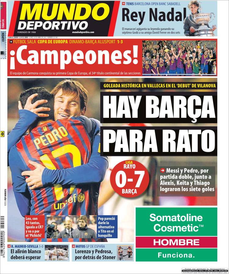 MUNDO DEPORTIVO BARCELLONA – Il Barcellona vince sette a zero contro il Rayo e rimanda la festa del Real Madrid.