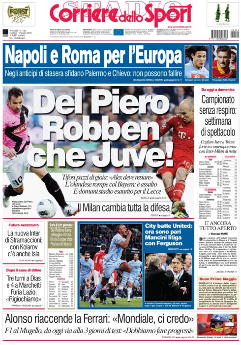 Corriere dello Sport: Del Piero-Robben che Juve 01/05/2012 di admin CORRIERE DEL PIERO ROBBEN JUVENTUS – Sul Corriere dello Sport si parla di Del Piero e Robben che potrebbero ritrovarsi alla Juventus. La redazione di Calciomercatonews.com