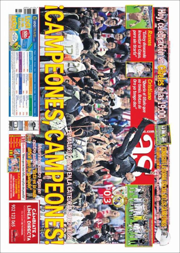 AS CAMPIONI – Sul quotidiano As si celebra la vittoria del campionato del Real Madrid che vince la Liga spagnola.