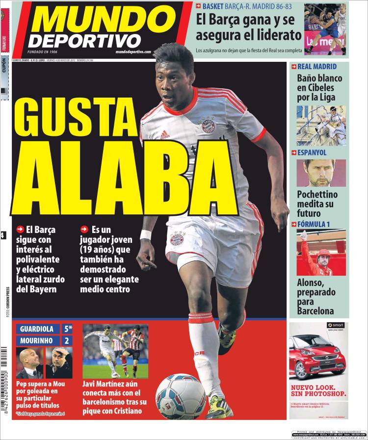 MUNDO DEPORTIVO BARCELLONA ALABA – Sul quotidiano Mundo Deportivo si parla dell’interesse del Barcellona per Alaba.