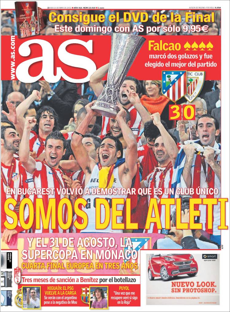 AS ATLETICO MADRID – Anche il quotidiano As parla della vittoria dell’Europa League da parte dell’Atletico Madrid.