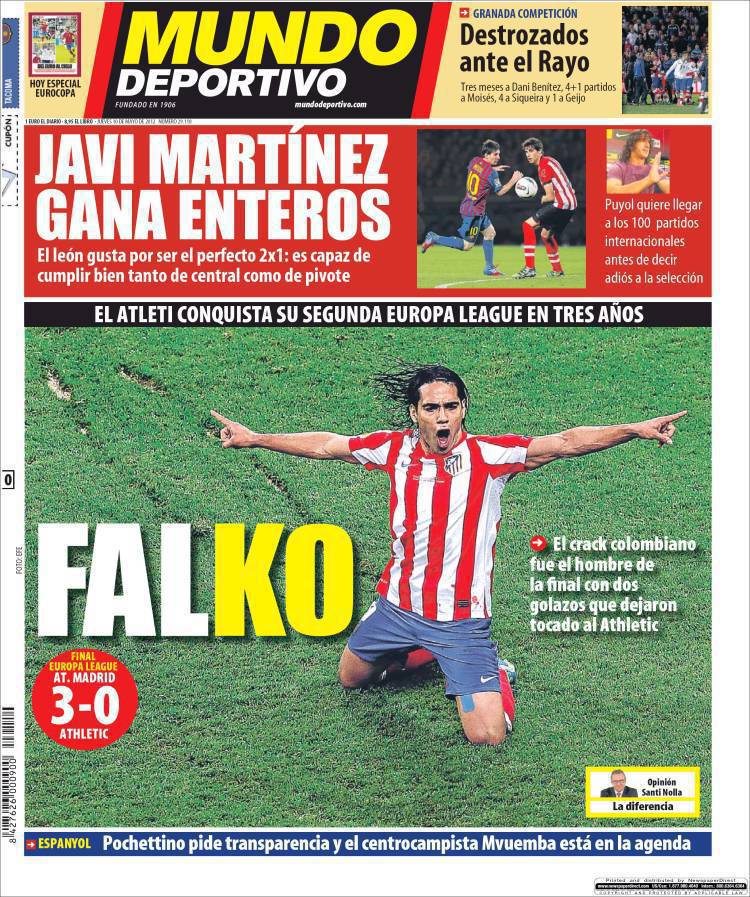 MUNDO DEPORTIVO FALCAO – Anche il Mundo Deportivo rende gloria a Falcao, stupendo bomber dell’Atletico Madrid che segna un’altra doppietta in finale di Europa League.