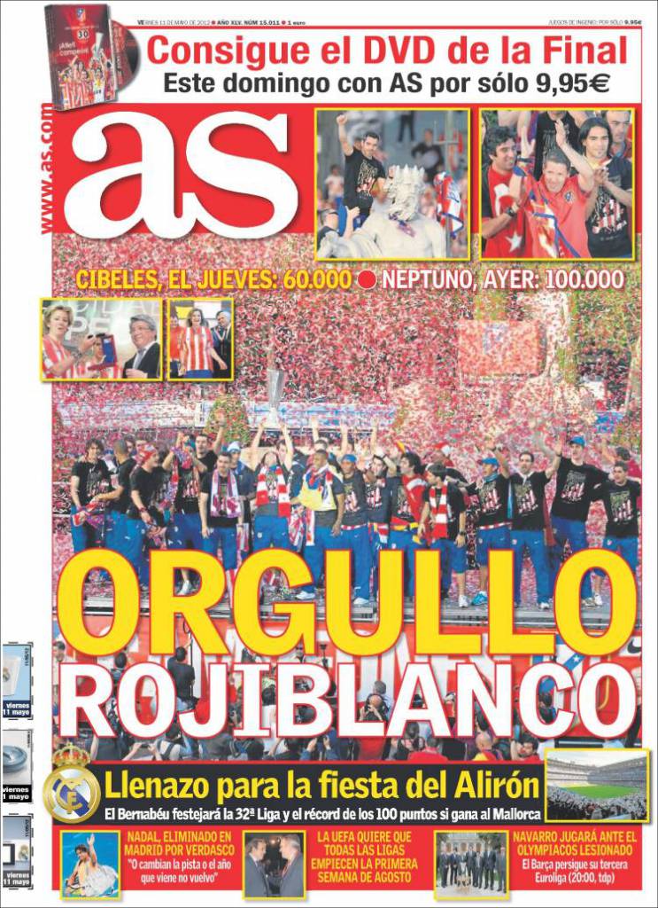 AS ATLETICO MADRID – Anche il quotidiano As parla dei festeggiamenti per la vittoria dell’Atletico Madrid in Europa League.